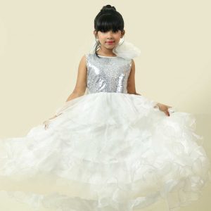 Girls White Party Gown